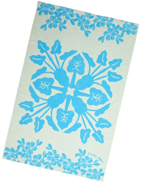 - アイランドスタイル キャシーマム/Island Style Kathy Mam★ハーフケット★ハワイアンキルト柄 ボノシリーズ タロ柄★水色xオフホワイト