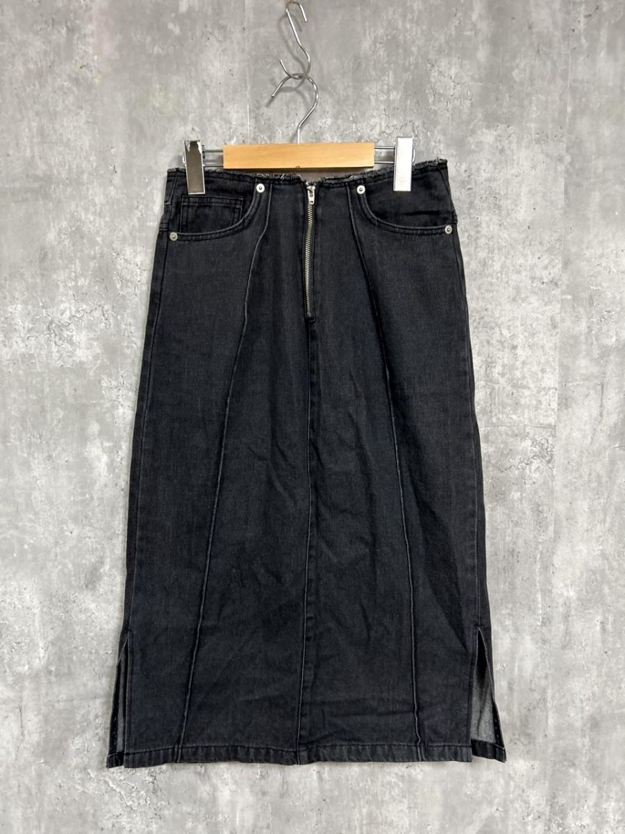 > ネコポスOK ZOOTIE DES SUCETTES ズーティーデサンセッツ ひざ丈 サイドスリッド ジップ デニムスカート sizeM/黒 ■■ レディース