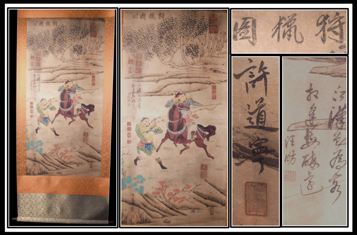 - 【骨董掛け軸】人物図 中国許道寧 北宋 肉筆保證 唐物唐本 掛け軸 捲り AK808A13-2