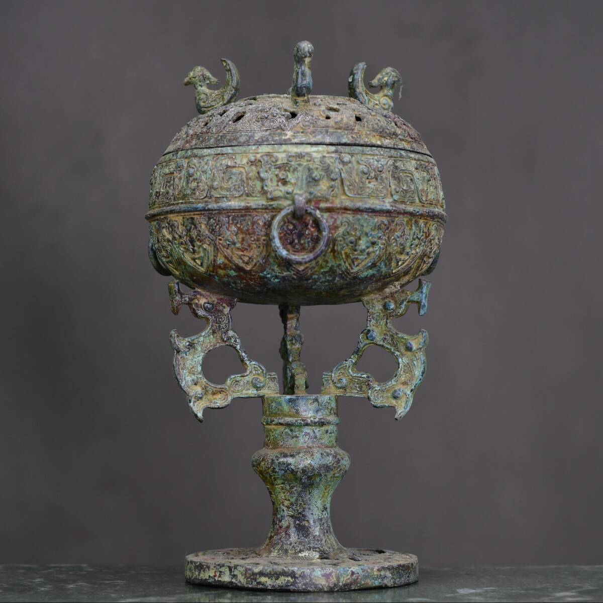 - ▽鴻▽ 戦 青銅製 龍鳳熏香炉 青銅器 置物 賞物 古賞物 古董品 時代物 稀少珍品 中国古玩 中国古美術