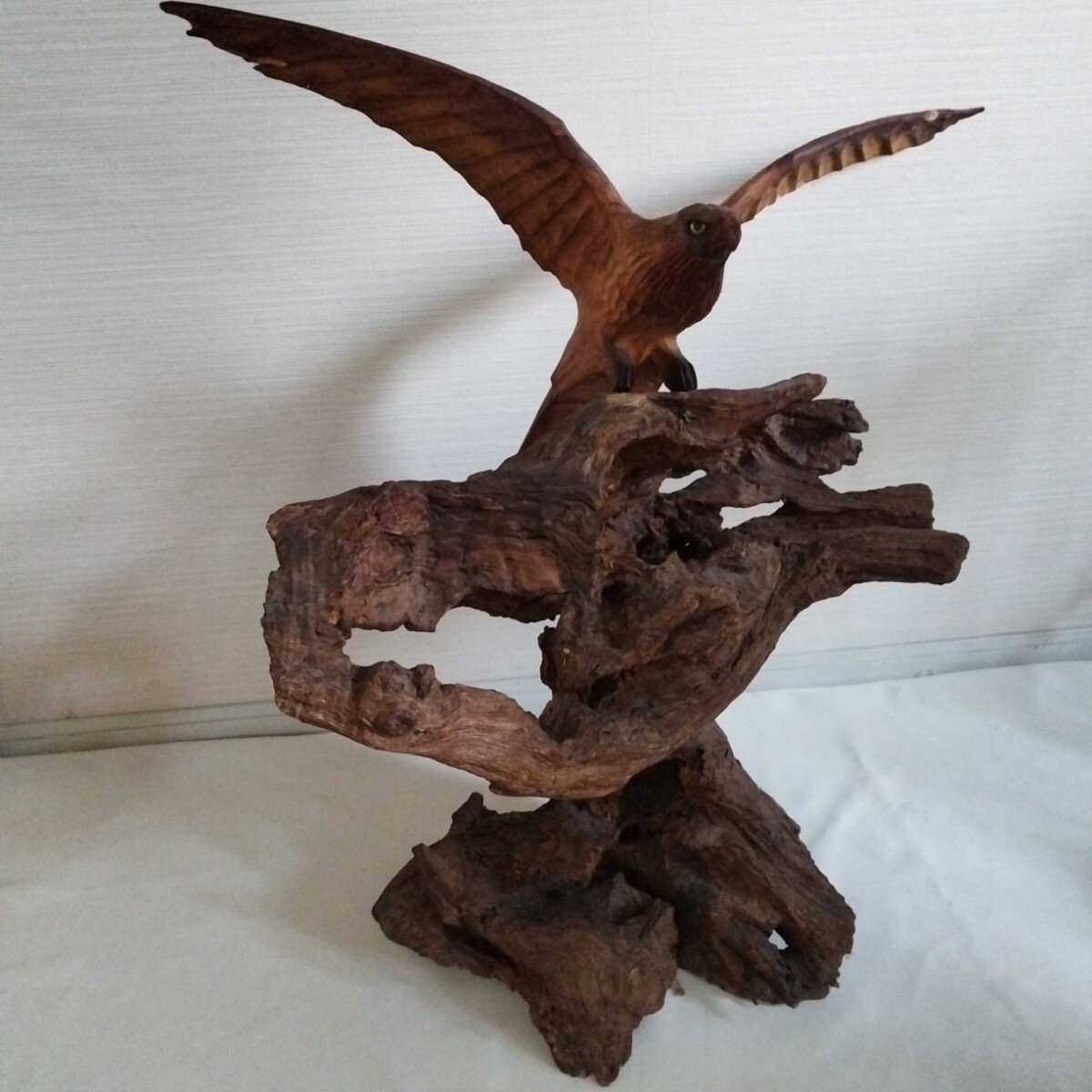 > レトロ 木彫 鷲 鷹 鳥 置物 彫刻 郷土芸術 民藝 オブジェ インテリア 無垢 japanese antique woodin art アンティーク