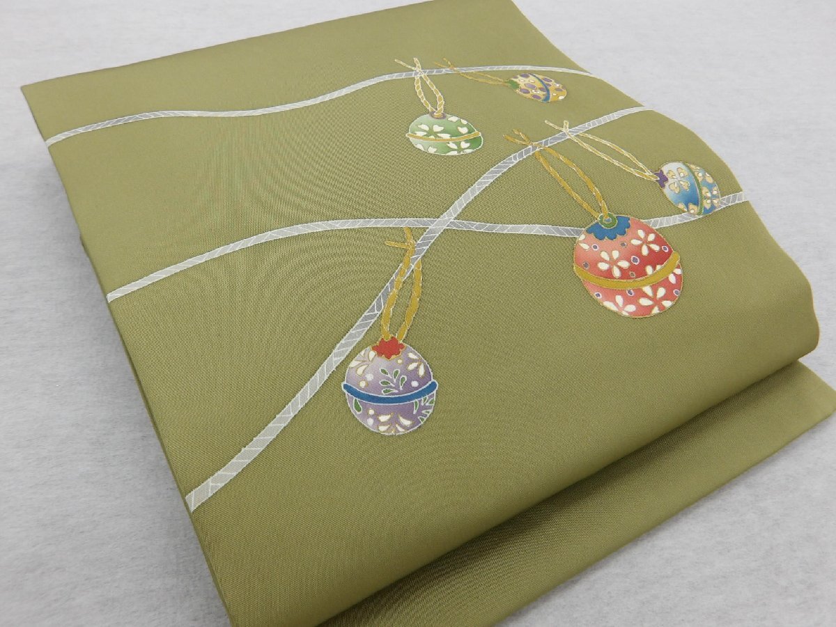 > 〔楽布特選〕P34624 塩瀬 手描き友禅 名古屋帯 未使用仕立上がり品 t