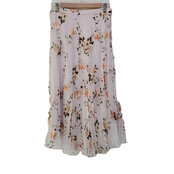 - ダーマコレクション DAMAcollection ロングスカート サイズ64 - 白×ピンク×マルチ レディース 花柄/プリーツ 美品 ボトムス