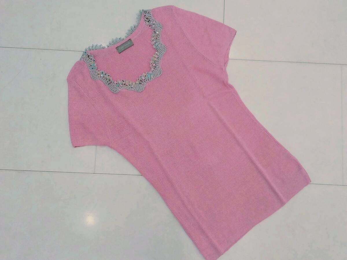- 新品 未使用 イタリア製 CARLA VARIALA カーラ ヴァリアーラ サマー ニット 半袖セーター 麻×絹 イタリアサイズ 44 L