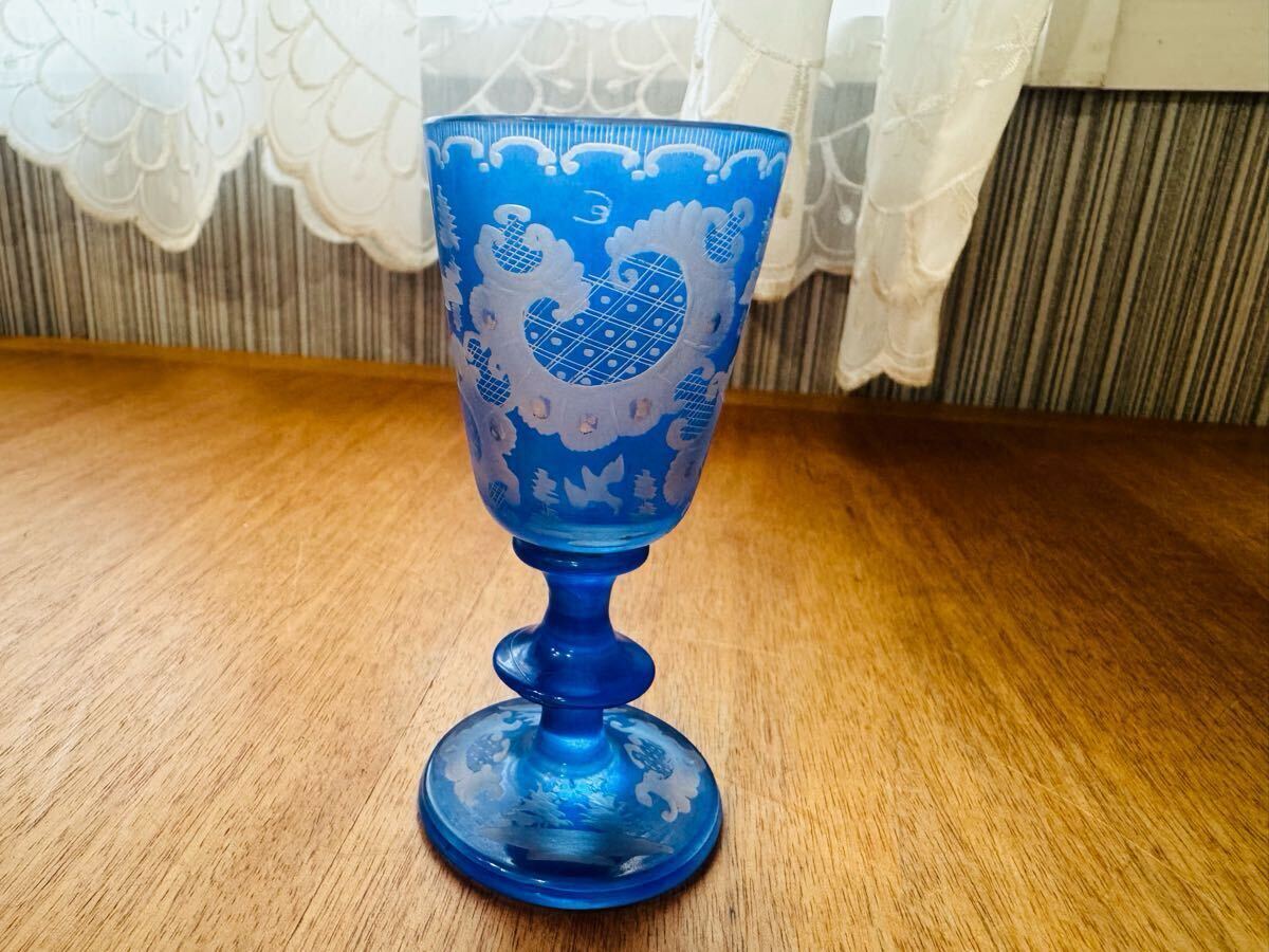 - 【美品】ボヘミアンガラス エーゲルマン 酒器 ワイングラス ブルー グラス