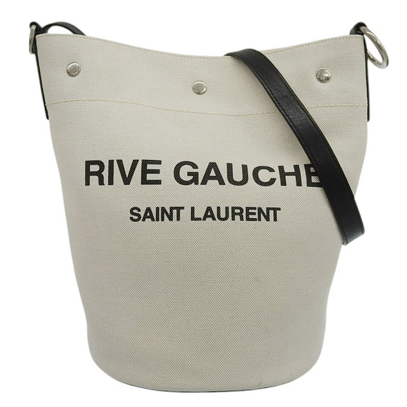 - サンローラン SAINT LAURENT バケットバッグ ショルダーバッグ キャンバス/レザー ホワイト/ブラック 669299 中古 新入荷 OB2537