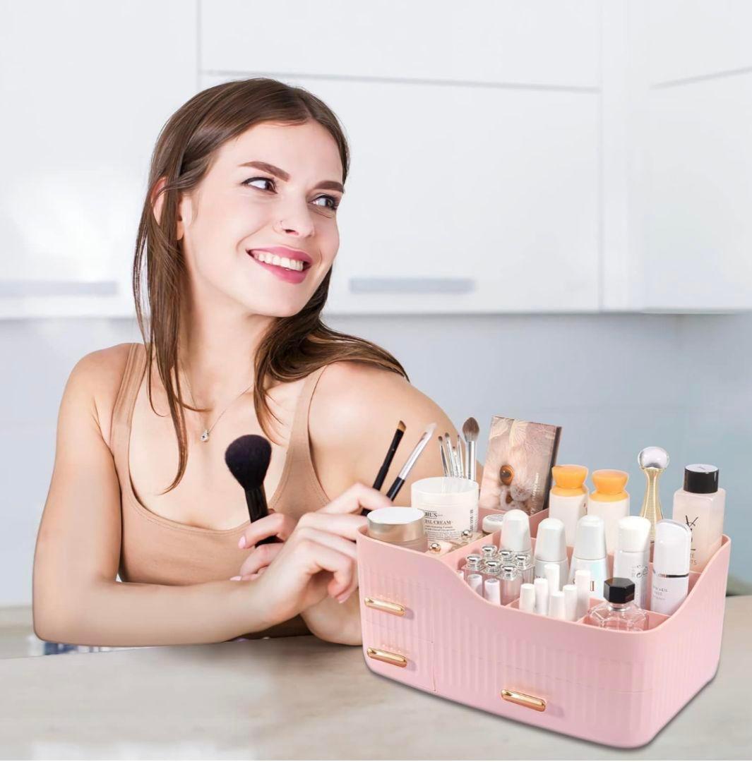 - 化粧品収納ボックス 引き出し付き ピンク メイクボックス 大容量 スッキリ収納