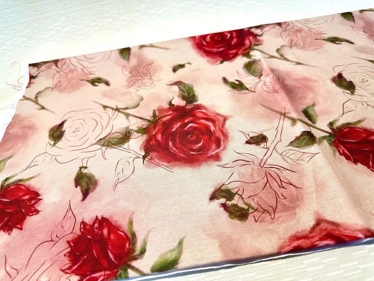 - USAシーチング綿生地幅110cm×50cm.一輪赤薔薇