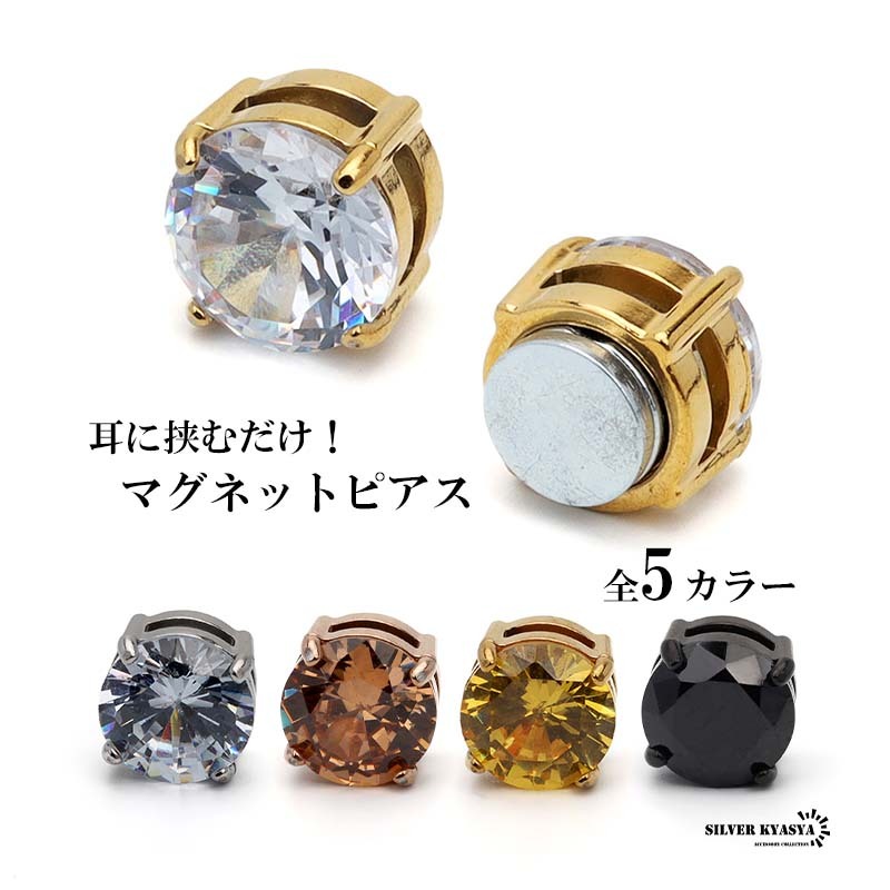 - (A-ゴールド×ホワイト) マグネットピアス 磁石 キラキラ イヤーカフ 両耳用 大粒 ステンレス つけっぱなしOK
