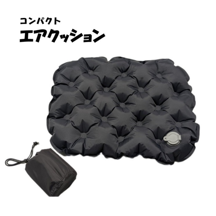 - 【P0138】軽量 折りたたみ座布団 エアークッション [黒]アウトドアクッション