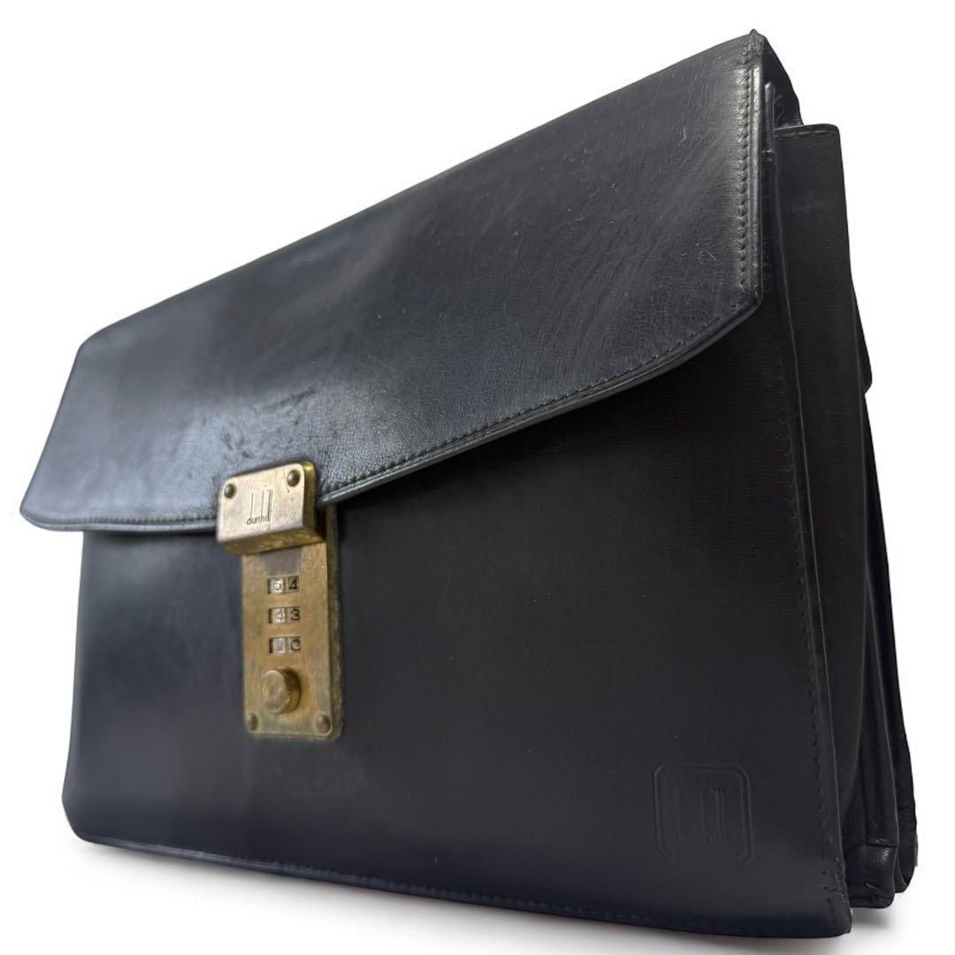 - 【鑑定済】dunhill ダンヒル レザー 本革 セカンドバッグ クラッチバッグ ダイヤルロック フォーマル ビジネス 仕事 ブラック 黒 S2875