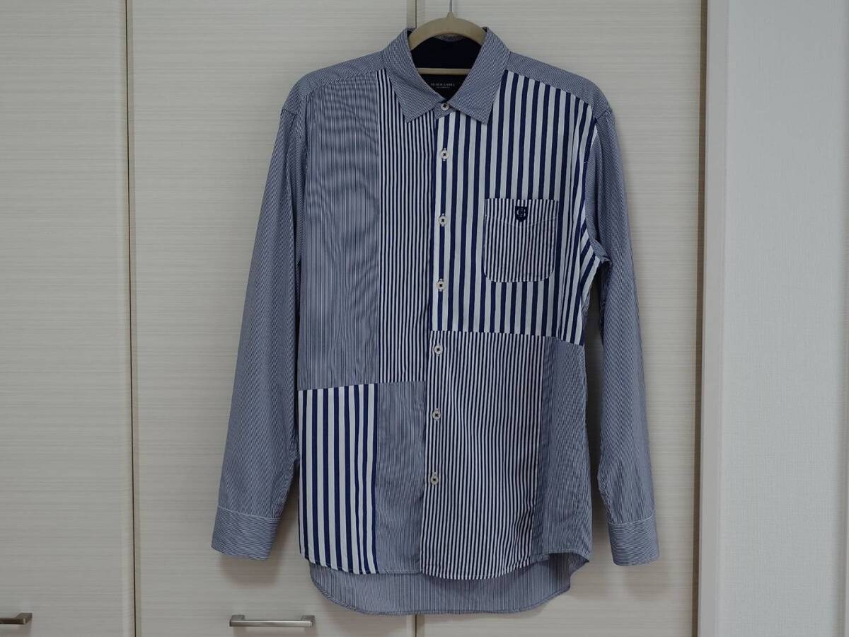 - ★超美品 国内正規品 バーバリー ブラックレーベル コットン切り替えストライプ長袖シャツ Mサイズ 紺/白色★