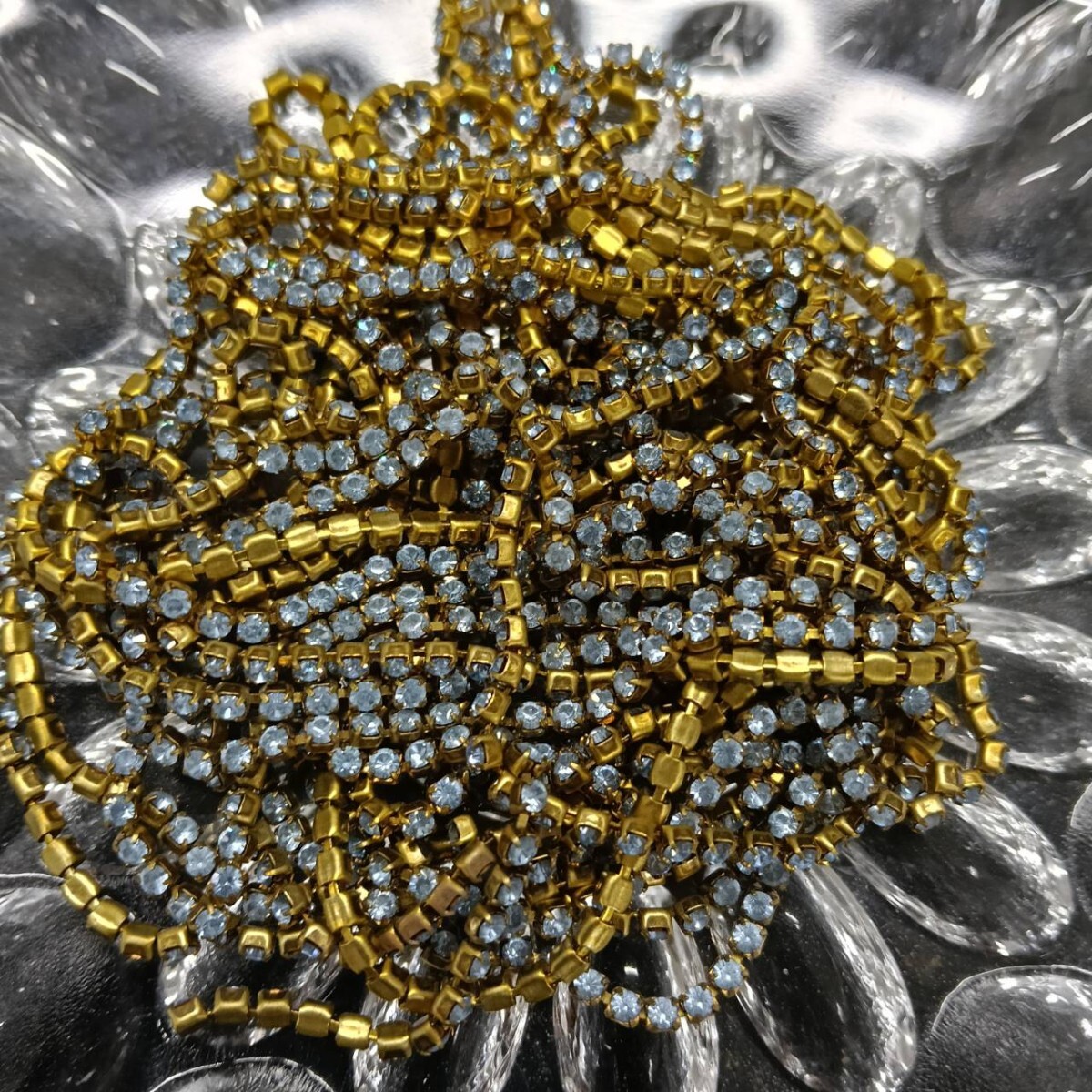 - ☆ほぼ未使用 SWAROVSKI スワロフスキー ヴィンテージ ルース 約48g カップチェーン 連爪 3mm 乳白色×ゴールド色 裸石 アクセサリー B-24
