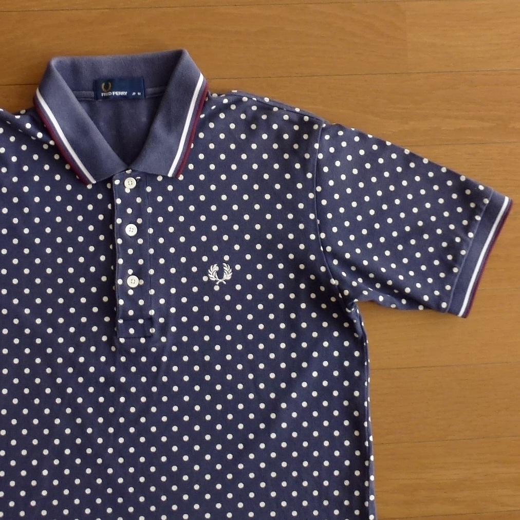 - FREDPERRY フレッドペリー 鹿の子 ドット柄 ポロシャツ 袖襟ライン入り ワンポイントロゴ 月桂樹 刺繍ロゴ Mサイズ 即決あり!