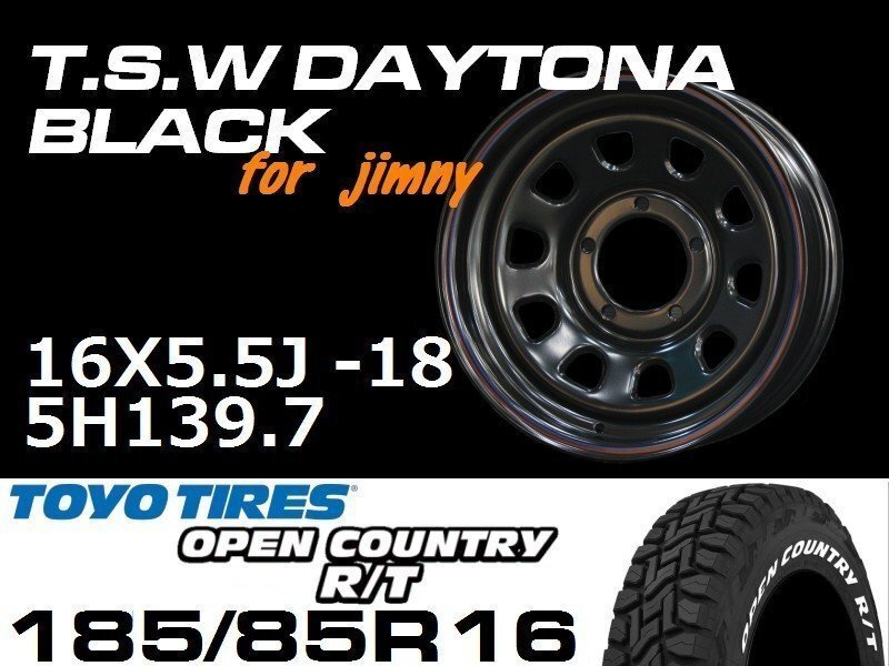 > ● ティスファクトリー ジムニー TSW デイトナ ブラック 16×5.5J -18 5穴 TOYO OPEN COUNTRY R/T 185/85R16 タイヤセット [JB64 / JB23]