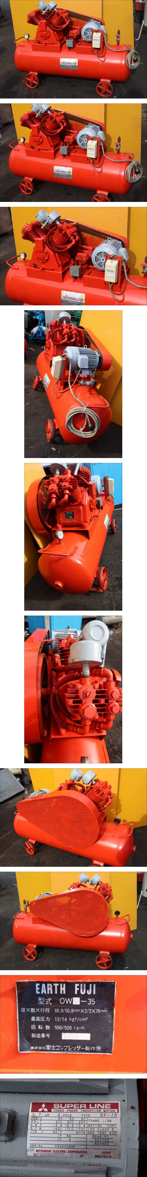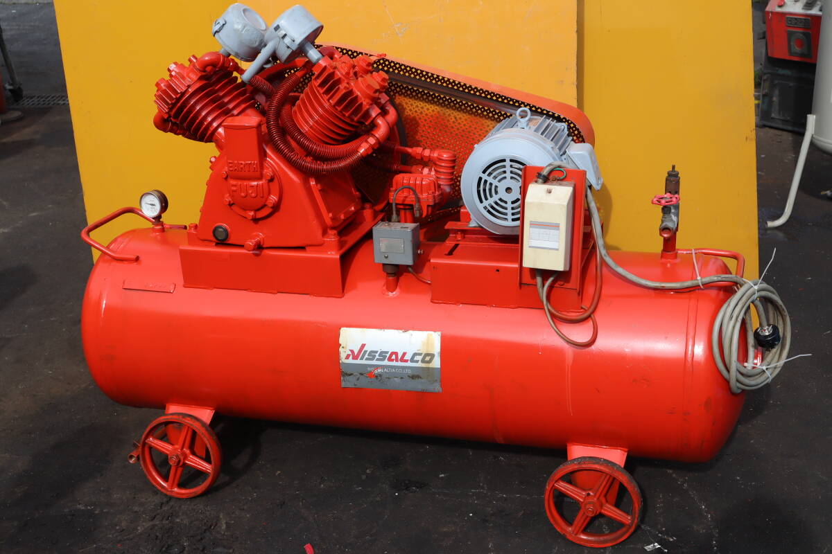 - EARTH FUJI エアーコンプレッサー NISSALCO OW-35 3.7kW(5馬力)三相200V 整備点検済 動作確認済 即決価格