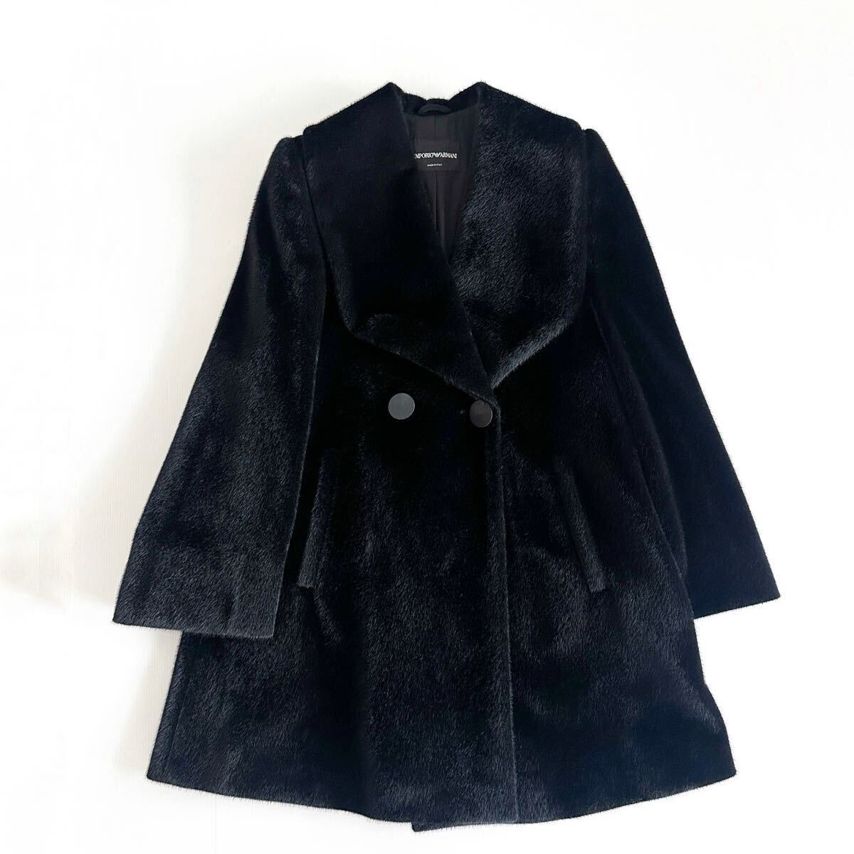 > ★ 【美品】EMPORIO ARMANI エンポリオアルマーニ / エコファーロングコート 黒 38 イタリア製 ブラック M