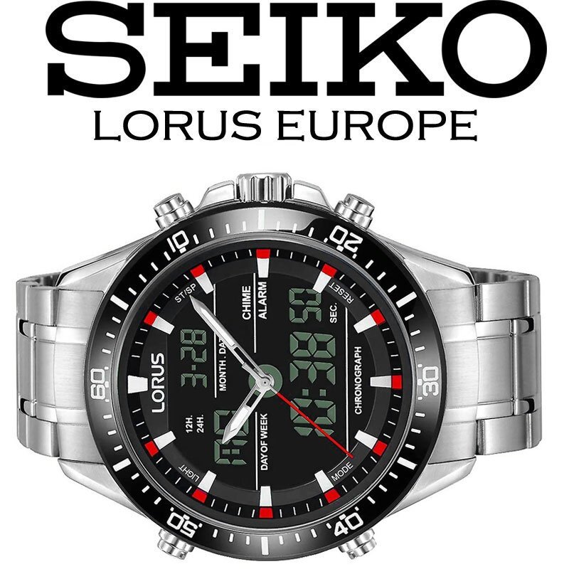 - 新品1円 セイコーLORUS 逆輸入ハイブリッド 欧州モデル 激レア日本未発売 フルメタル仕様 デジアナ 100m防水 新品 メンズ 腕時計 SEIKO