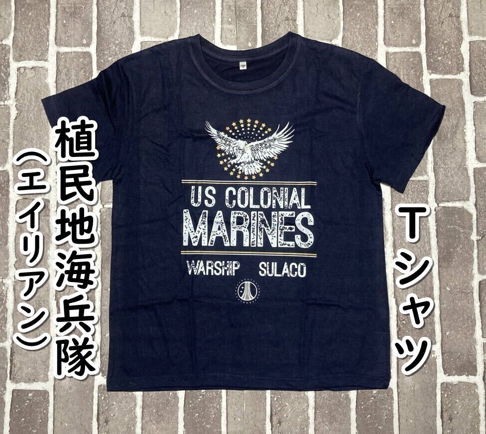 - ▲棚:V_H7【Tシャツ コロニアル・マリーンズ:植民地海兵隊 (エイリアン2:シガニー・ウィーバー) Mサイズ #ネイビー】sa_wjig S07-20