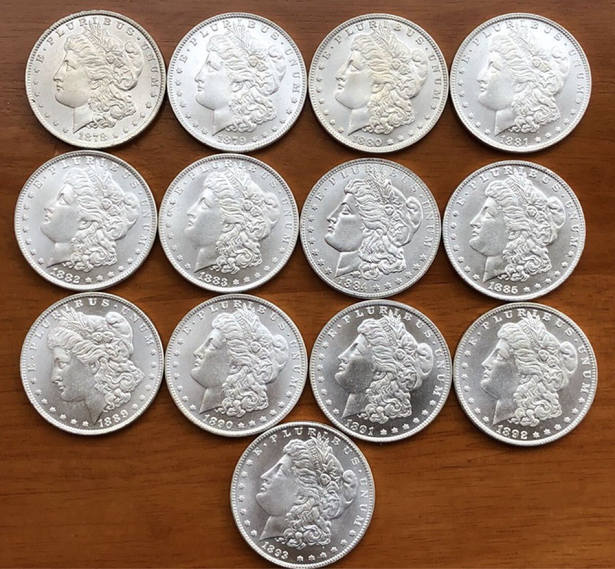 > 極美品 アメリカ 自由の女神 コイン 1ドル 13枚セット 1873年〜1893年 大型硬貨 外国銀貨 貿易銀 海外コイン 銀貨 コレクション 収蔵品