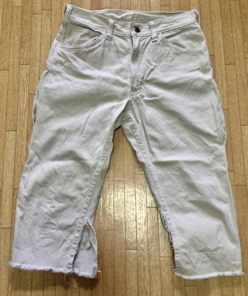 > 60~70s ヴィンテージ Lee リー ホワイトデニムパンツ USA製 talon42ジッパー 革タグ ダメージ多し ★ショートパンツにカット