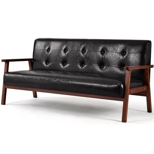 - 2人掛けソファー 2P レザー PVC 肘付き 天然木脚 簡単組み立て おしゃれ 新生活 北欧スタイル ソファベッド 2.0
