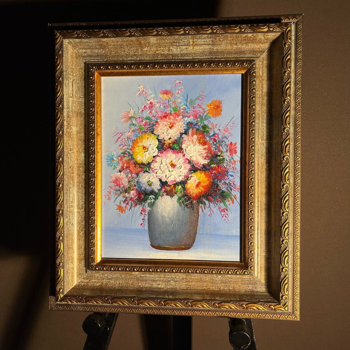 - 手書き油絵 花瓶の花 額付 絵画 インテリア 油彩画