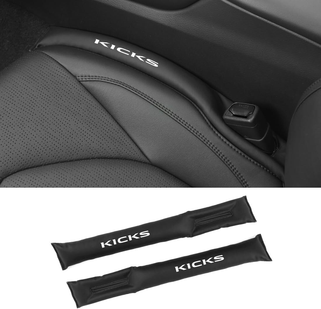 - キックス ロゴ入り 隙間埋めクッション 車用 シートサイド クッション 落下防止 運転席+助手席 ロゴ左右対称設計 2本入り (ブラック)