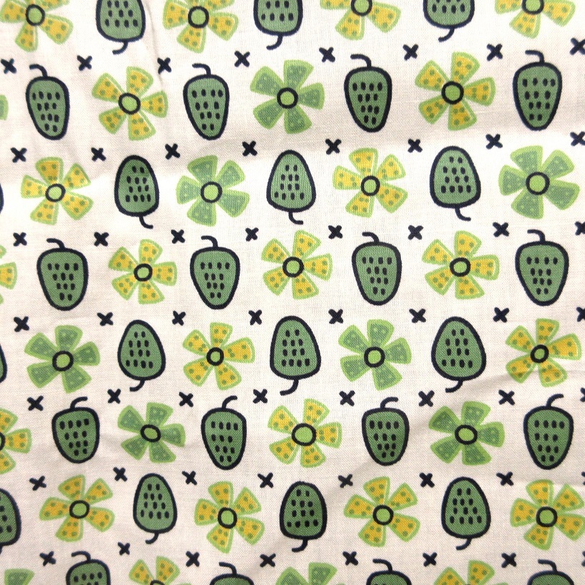 - 生地 花 いちご ボーダー 植物 ヴィンテージ