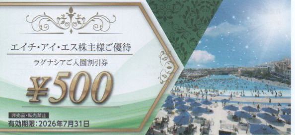 > エイチ・アイ・エス 株主優待券 ラグナシア入場割引券 有効期限:2026年7月31日 普通郵便・ミニレター対応可