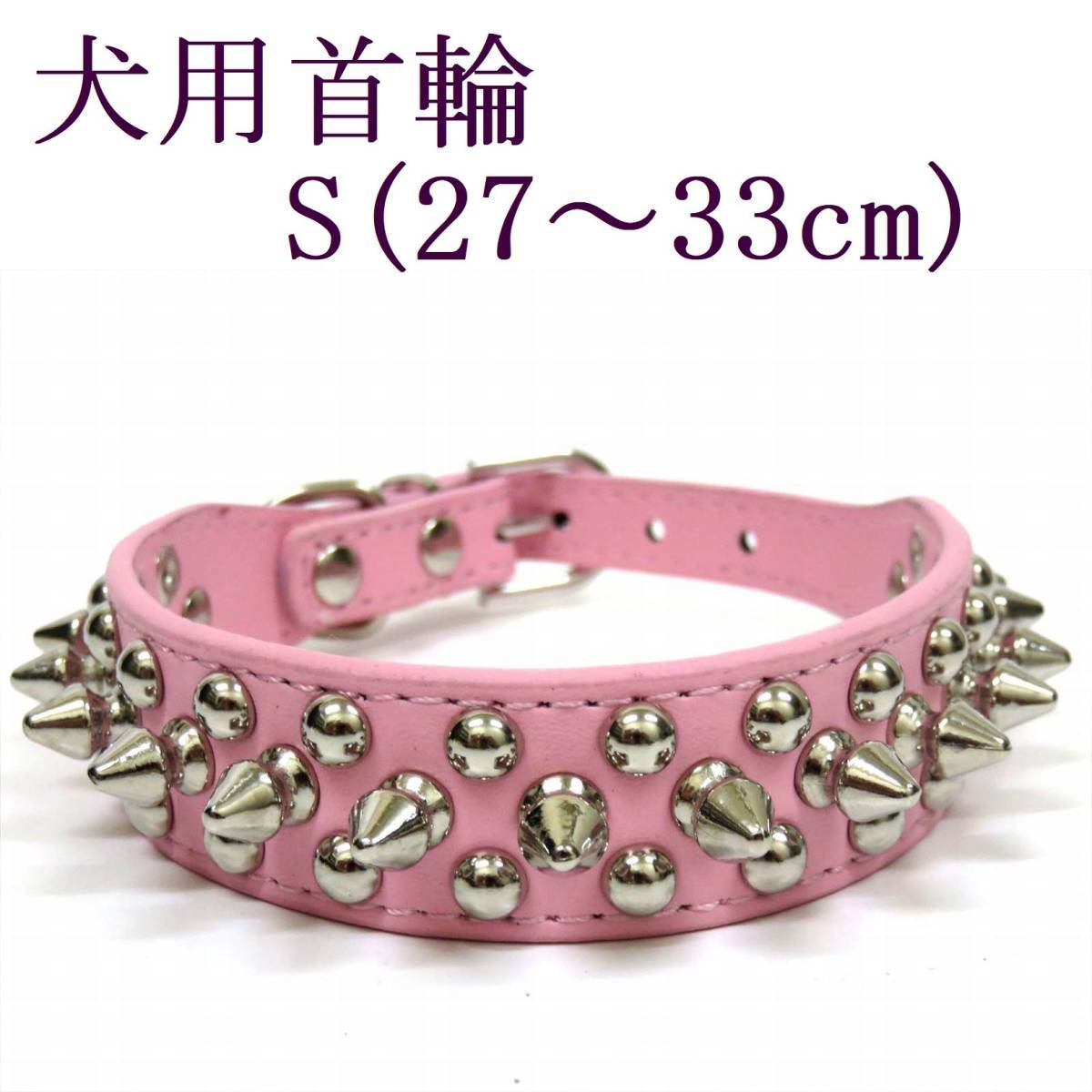 > 首輪 S ピンク 首回り27~33cm前後 幅2.5cm 小型犬 犬用 スタッズ付き首輪 PUレザー トゲトゲ カラー 散歩 スパイク 室内 ペット用品