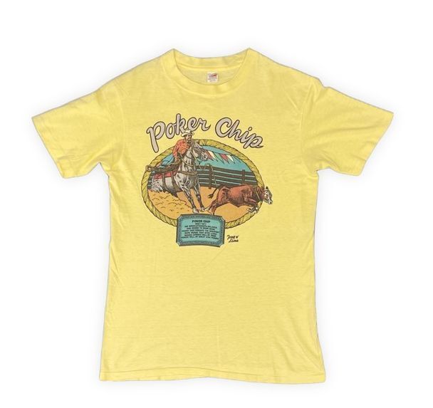 - 70's 80's 米国製 Hanes ヘインズ ビンテージ Tシャツ カウボーイ Poker Chip トニーラマ TONY Lama 綿100% 黄 M [la-1354]
