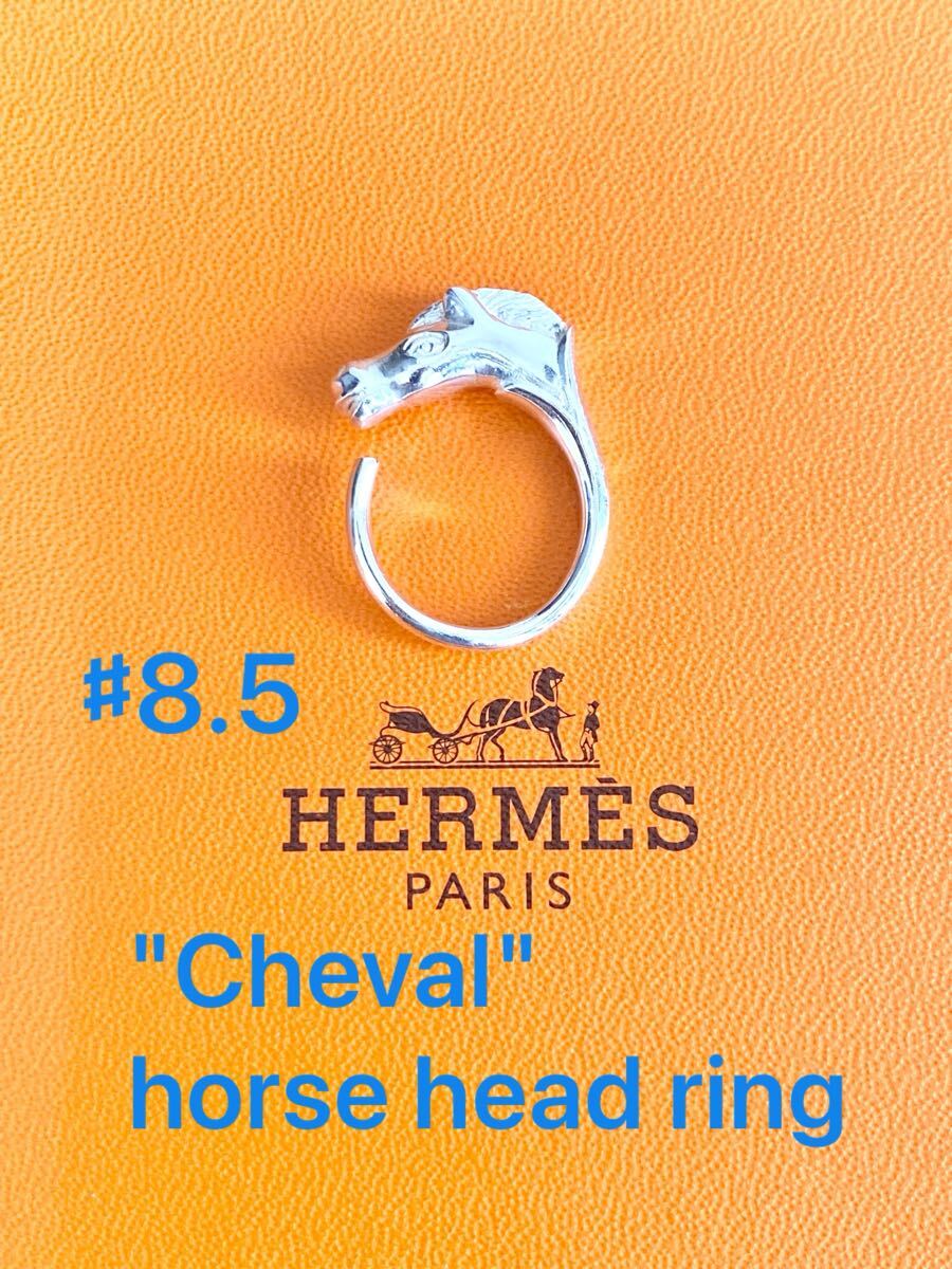 > ☆希少美品☆ 8.5号 箱付き HERMES エルメス ヴィンテージ リング シュバル シェバル ホース ヘッド 指輪 メタル 馬 ウマ 男女兼用 レア
