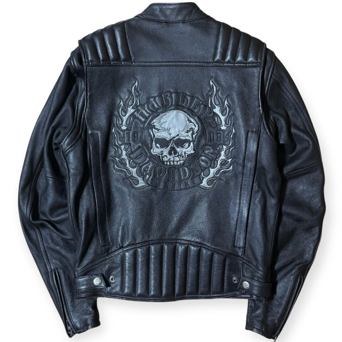 - HARLEY DAVIDSON 立ち襟 バックロゴ 本革 ライダースジャケット Sサイズ 髑髏 ブラック