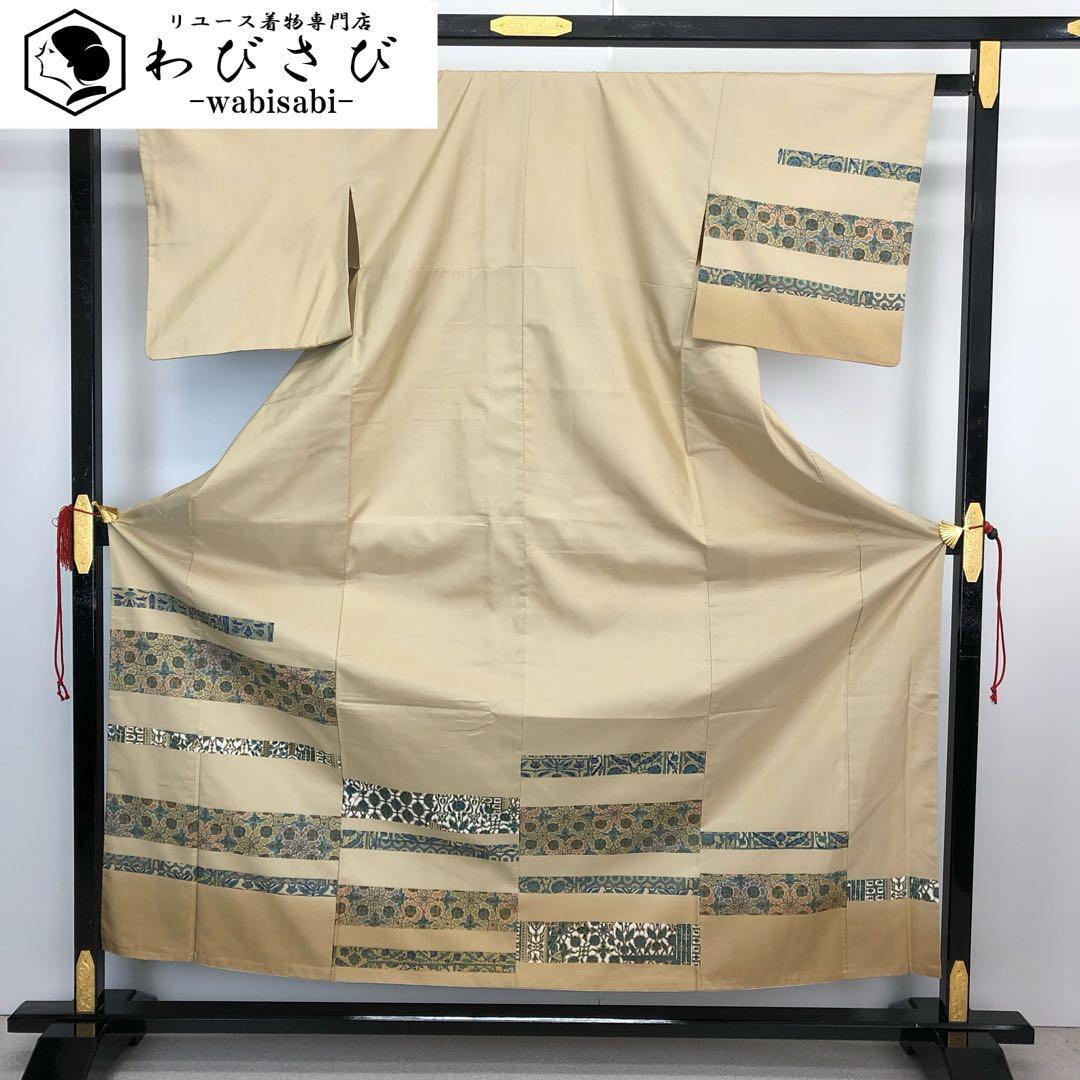 枯野色ベースのお色味にさらりとした手触りの良い生地に横段抽象花模様がデザインされた素敵な柄裄のお品でございます。