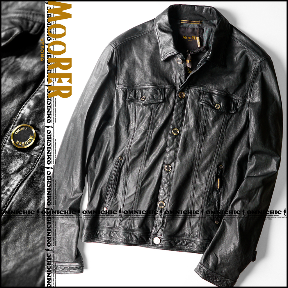 > 上位モデル■新品715,000円【MOORER】ムーレー/伊製/LOVERE-PER/宝石のような光沢ラムナッパレザートラッカージャケット50/3rdタイプ/NERO
