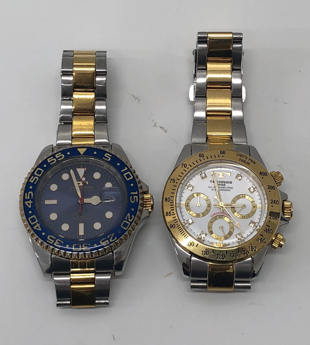 - ★【稼動品】TECHNOS テクノス メンズ 腕時計 ゴールド ホワイト文字盤 TGM640 TGM689 ブルー文字盤 2本まとめ
