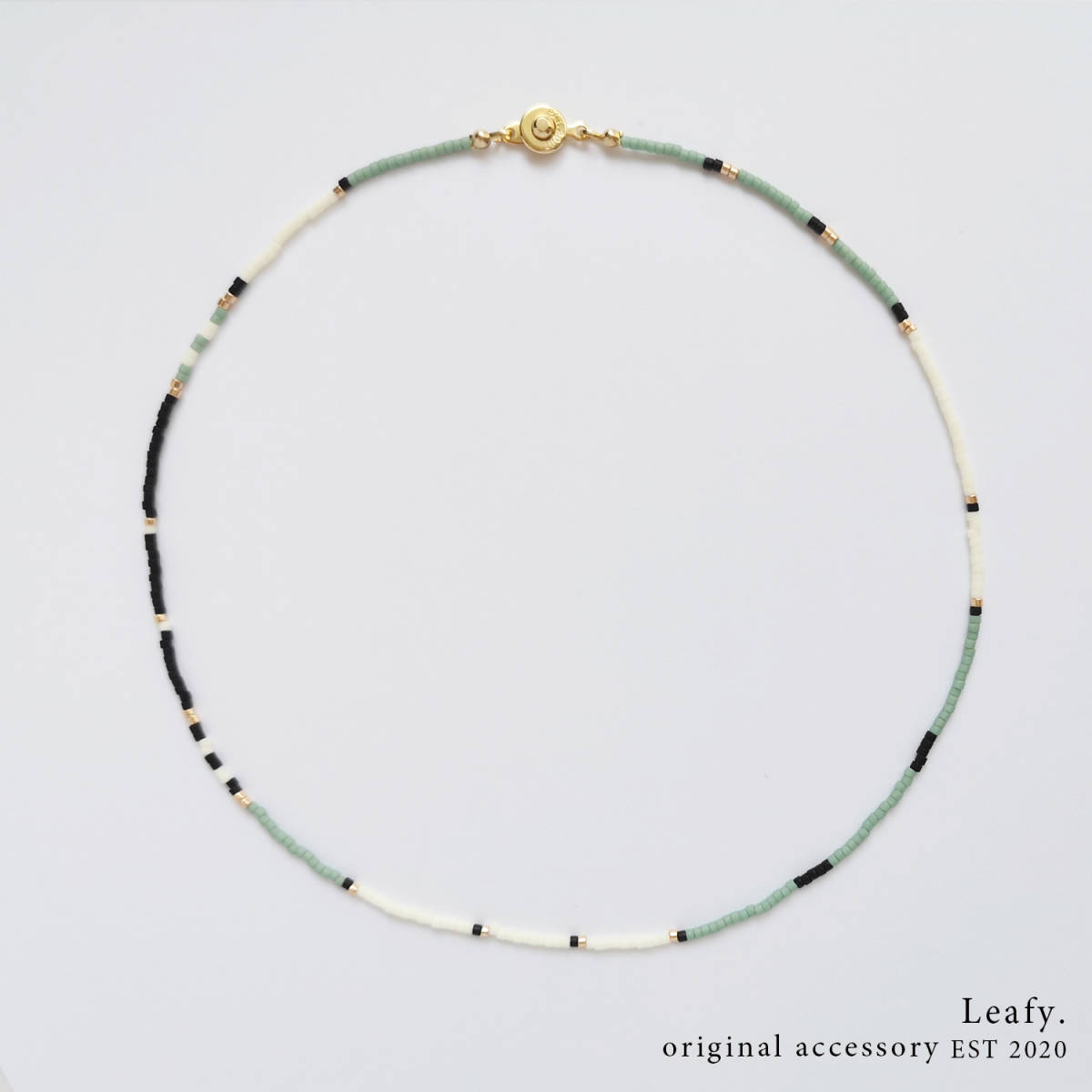 - 不規則ストライプカラーの華奢ビーズネックレス ミントグリーン/緑