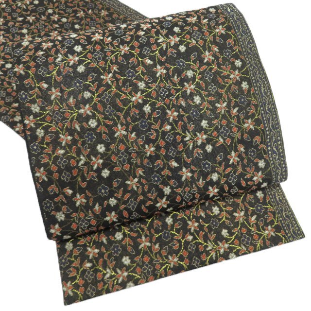 > 袋帯 中古 リサイクル 正絹 セミフォーマル 仕立て上がり 六通 花模様 箔糸 黒色 多色 金 きもの北條 A1242-10