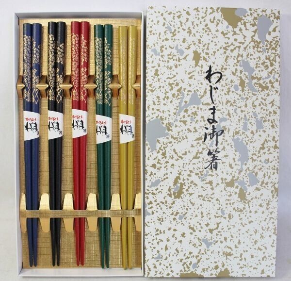 - 輪島塗 わじま箸 【 花垣】 5膳セット 天然木 化粧箱