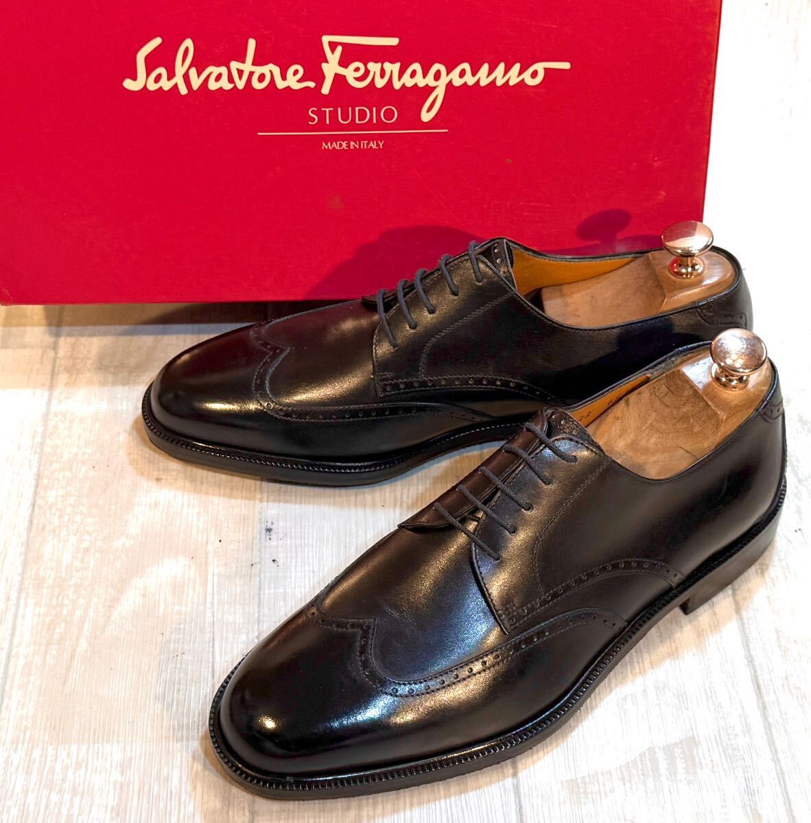 - 【未使用】Salvatore Ferragamo フェラガモ◆24.5cm 6.5 2E◆ウイングチップ ダービー 革靴 本革 ビジネスシューズ ドレスシューズ ITALY製