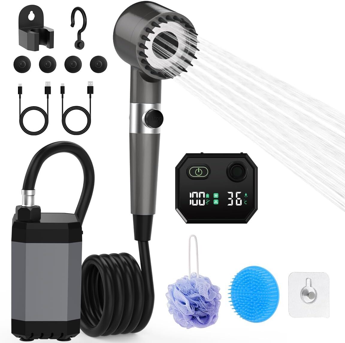 - 車中泊・ソロキャンプに最適 最強ポータブルシャワー 投げ込みヒーター 電気浸漬給湯器セット ポータブルシャワー キャンプ