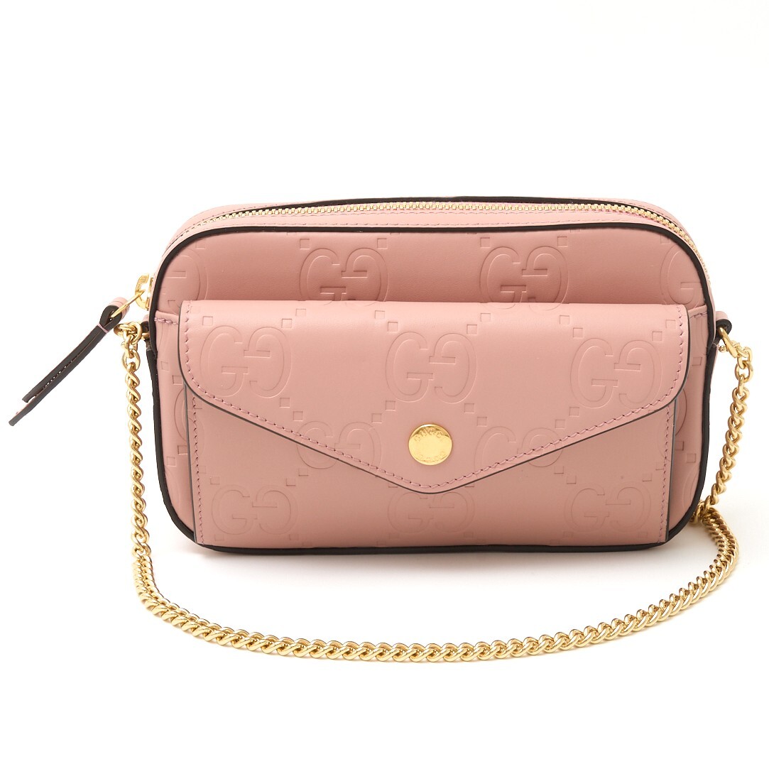 > GUCCI グッチ GGミニショルダーバッグ 781554 コンパクト チェーン クロスボディBAG レザー ピンク×ゴールド金具 レディース