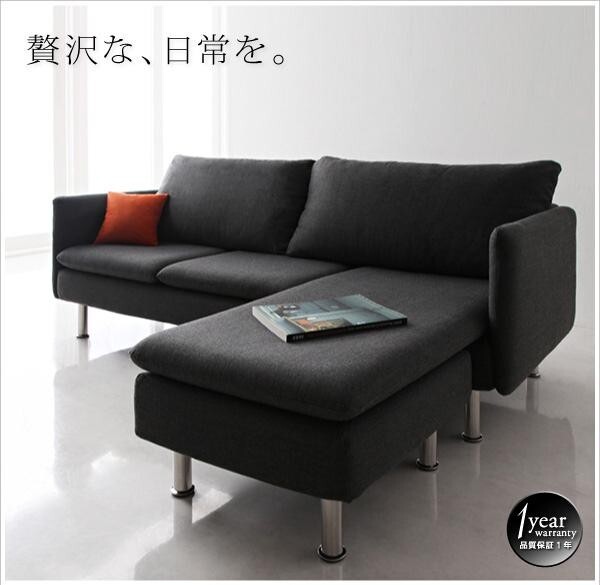 > 新品未使用 レイアウト自由 モダンデザインカウチソファ クッション付き ブラックファブリック