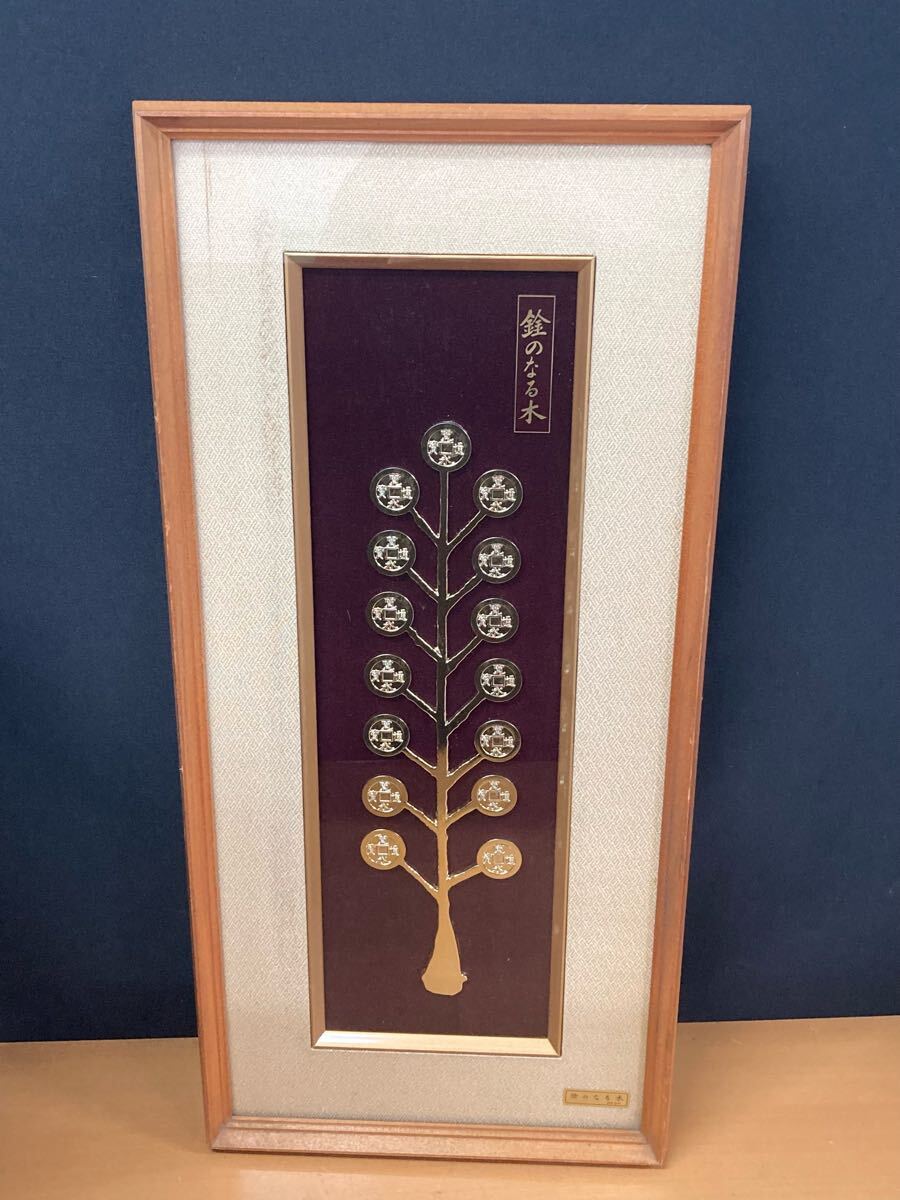 > 堀) 金のなる木 額装 24KGP インテリア 銭のなる木 インテリア 銭 縁起物 和風 壁掛け 中古 (250723 K-1)