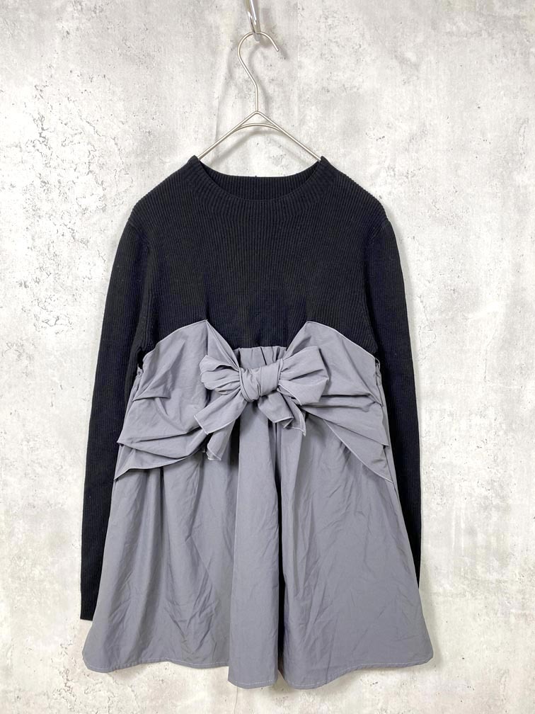 > ゆうパケットOK 美品 OPAQUE.CLIP オペークドットクリップ リボン ビスチェ ドッキング ニット カットソー size38/M/黒xグレー ◇■