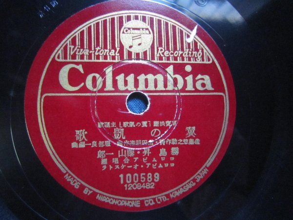 - コロムビア流行歌SP盤640★藤山一郎、霧島昇/翼の凱歌★松原操/空の母さん★美麗盤。SPレコード