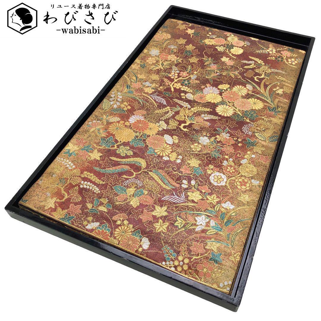 > 袋帯 煌びやかな四季の花々 金銀糸 深蘇芳色 O-1972 着物 きもの kimono 和服 和装 中古 リサイクル着物 【送料無料】