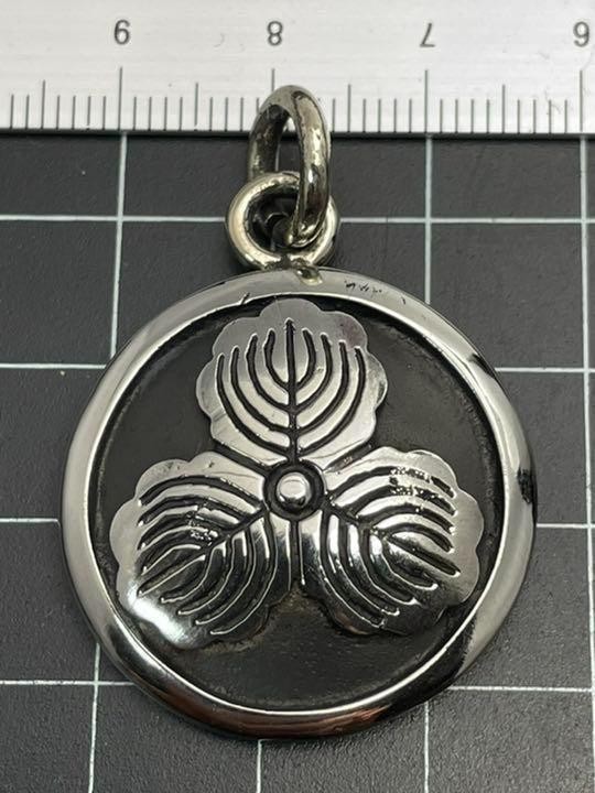 - 家紋ペンダント★丸に三つ柏★中★キーホルダー★ジャーマンシルバー