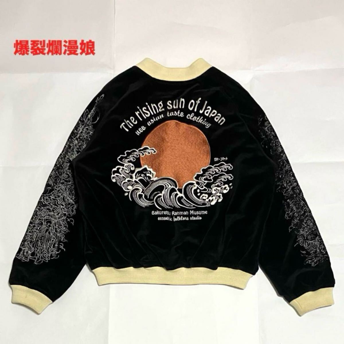 - 【希少】爆裂爛漫娘 バクレツランマンムスメ スカジャン ベロア リバーシブル サテン 水滸伝 日の丸 行者武松 別珍 和柄 刺繍